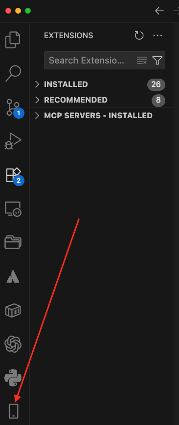 - Visual Studio Code에서 설치된 익스텐션을 열어줍니다.